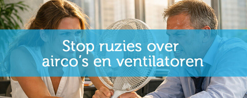Ondertussen heeft productiviteit plaatsgemaakt voor zuchtende en puffende collega’s. Of ze zitten met een sjaal in hun nek omdat de airco op standje noordpool staat. Met andere woorden, de tijdelijke oplossingen werken niet goed.